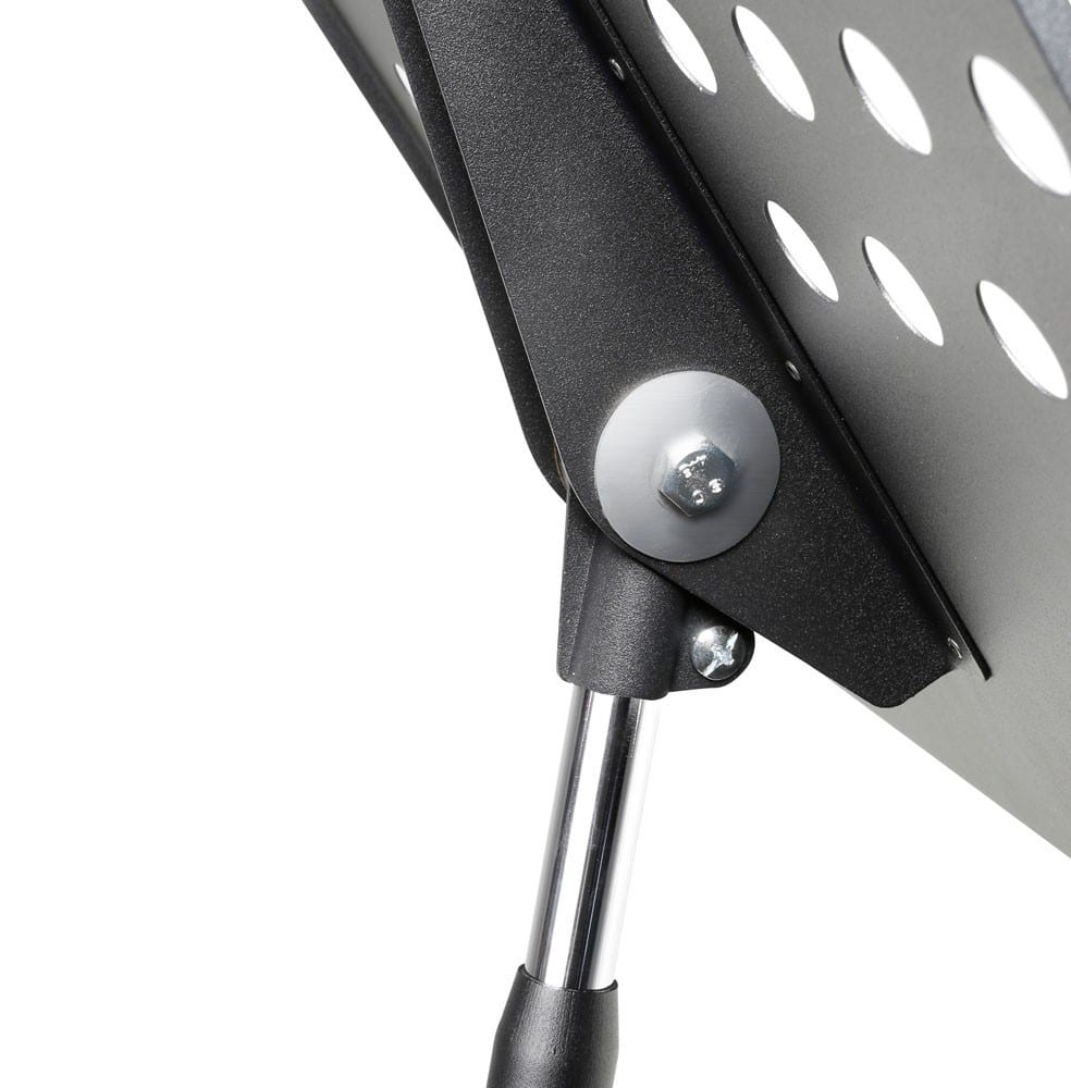 NSORC2L orkesters nodestativ har et perforeret nodebord af stål og kraftig stativbund. Det giver praktisk friktionshøjde uden knop og justering af skrivebordets hældning til brug, når du sidder eller står.