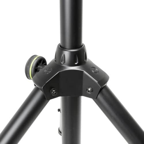 Den nydesignede, ekstremt holdbare montering af støttefødderne er lavet af trykstøbt aluminium. Stålmanchetten på højdejusteringen er praktisk talt uforgængelig og sikrer ekstra stabilitet. En sikkerhedsnål låser det 35 cm stærke forlængerrør.