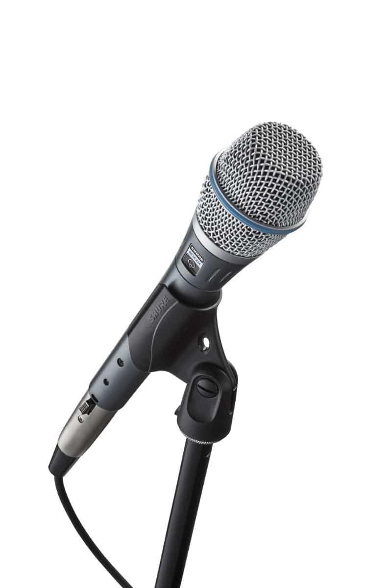 - Shure BETA®87A er en supercardioid håndholdt elektretkondensatorvokalmikrofon i førsteklasses kvalitet med exceptionelt jævn frekvensrespons og høj lydtryksevne. Beta 87A, der bruges til professionel lydforstærkning, udsendelse og studieoptagelsesapplikationer, kombinerer fremragende ydeevne med den robusthed, der er nødvendig til turné- og feltproduktion.