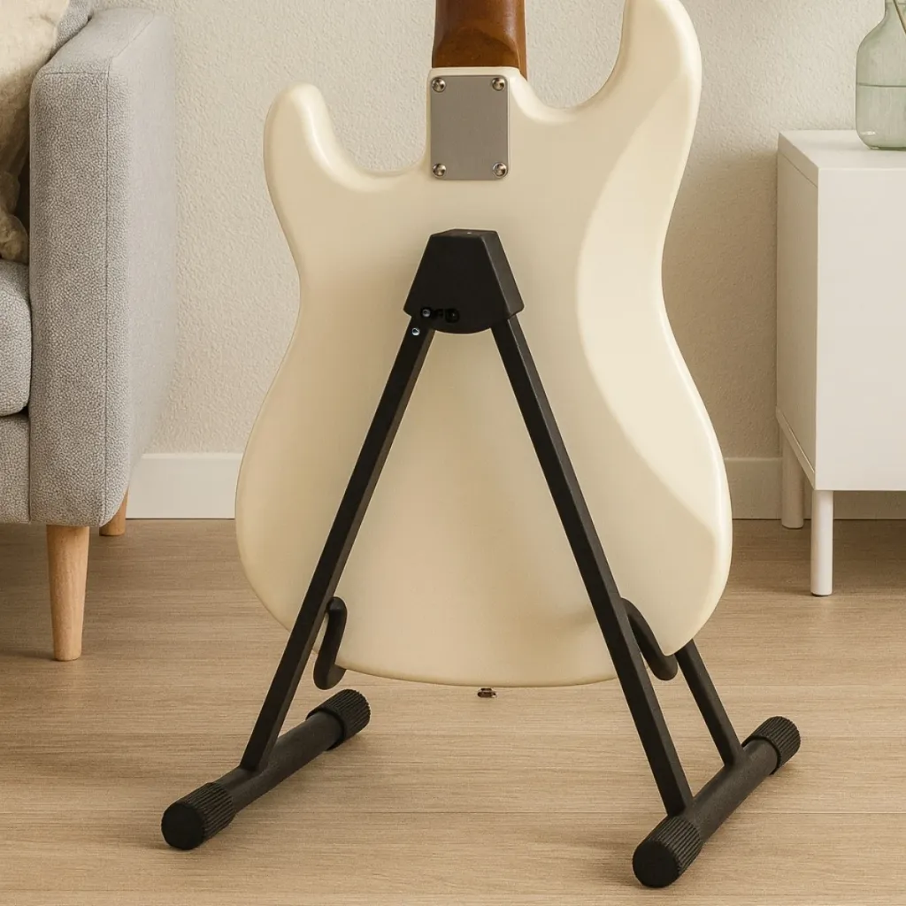 Tuff Stands GS-40 er et gulvstativ til både guitarer og basser, og stativet er designet sådan, at det både passer til aukustiske og elektriske guitarer og basser. Armene som bærer din guitar eller bas, har en blød overfalde, så du undgår at din guitar/bas bliver skrammet, eller glider. Stativet er stabilt udført i metal, som er et stabilt materiale, og kan derfor holde til ret meget. Derudover så er stativet meget komfortablet, fordi ar det er nemt at klappe sammen, og nemt at folde ud hvis du har brug for det.